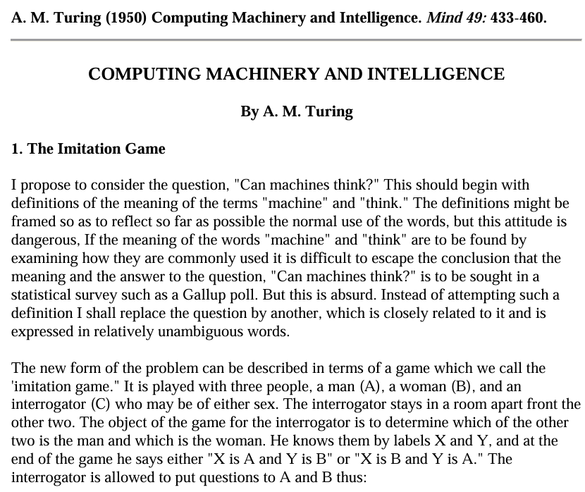 Si la máquina logra engañar a la persona y hacerse pasar por humana durante la conversación, entonces Turing decía que habría que considerar que la máquina “piensa” en algún sentido práctico.