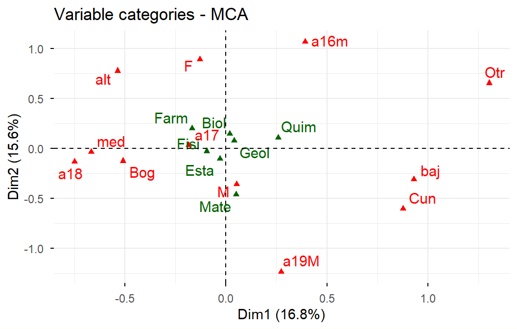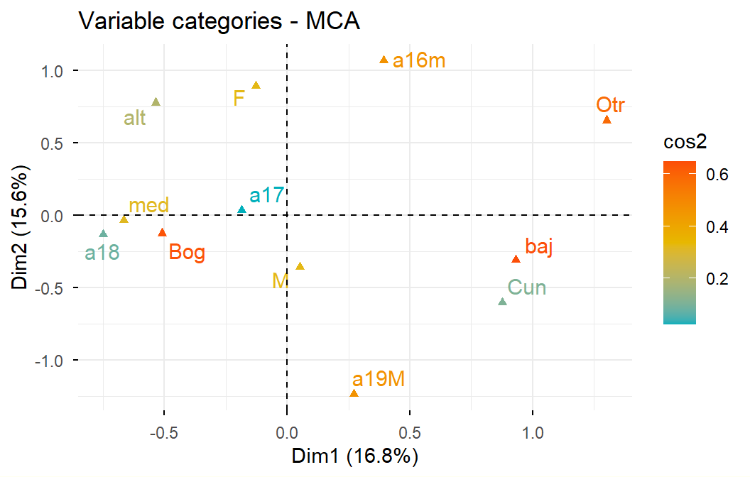 En la anterior situación correspondía un ACM. Podríamos reproducir el trabajo anterior y sus resultados ahora con otro paquete, pero de pronto es más interesante, productivo y valioso trabajar ahora con otro conjunto de datos: