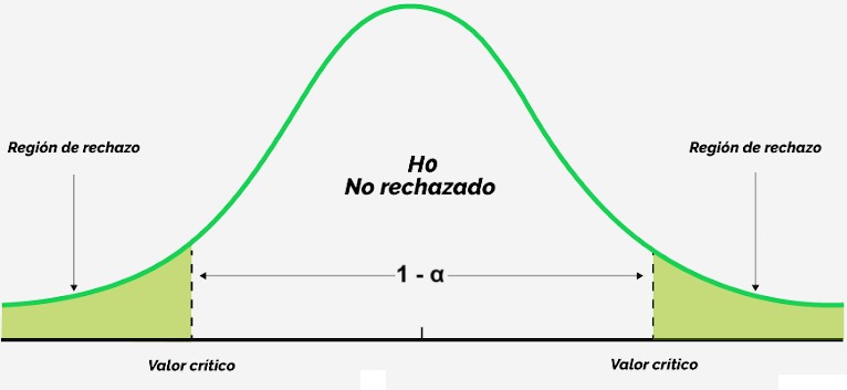 En general, la región de “no rechazo” es equivalente a un intervalo de confianza del parámetro de interés. Mediante una transformación adecuada puedo pasar de un intervalo de confianza a una región de rechazo, y viceversa.