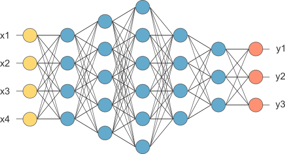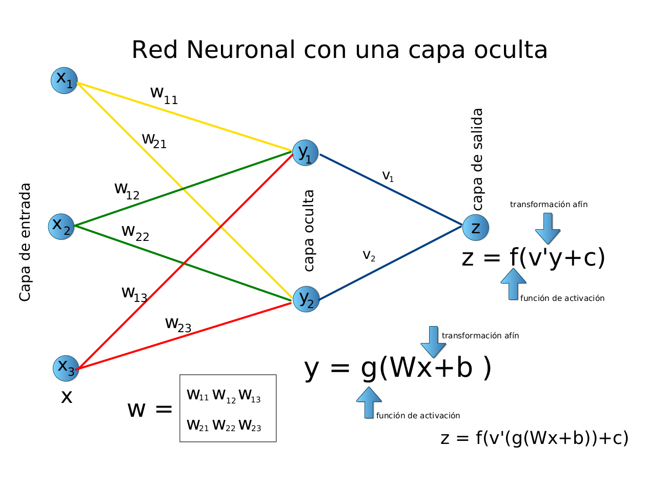 En este caso, la capa de entrada posee 3 neuronas artificiales.