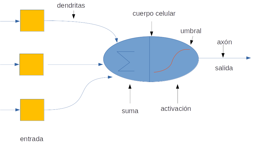 - Soma (cuerpo celular). Suma todas las señales entrantes para generar una señal total de entrada (input).